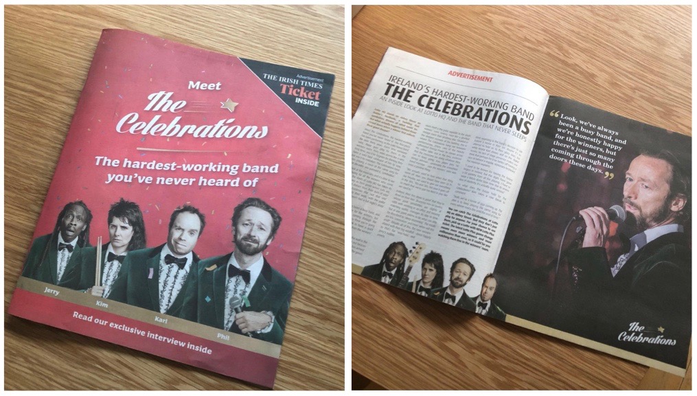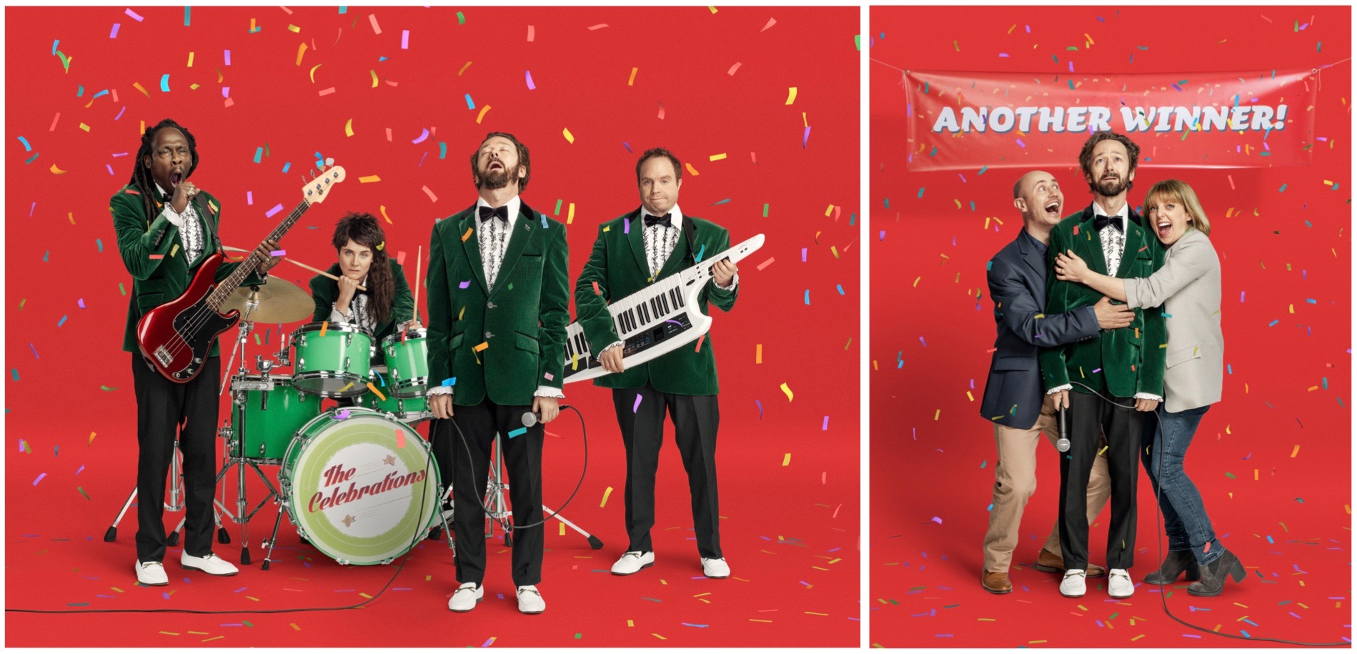 Meet The Celebrations – the chronically overworked Lotto house band. Since the chances of winning the Lotto recently improved, their lives have become unbearable. Having had a relatively cushy gig for the last 30 odd years, the band are now being dragged out to perform every 10 minutes as another Lotto winner collects their prize. The same song. Every. Single. Time.